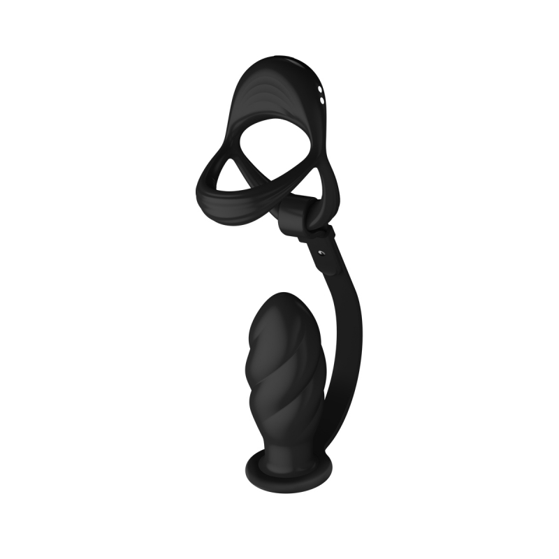 Эрекционное кольцо + рельефная пробка "Running Wild Spiral Plug" с вибрацией
