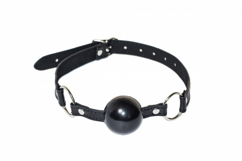 Выполнен кляп из ПВХ в виде шарика. Ремешок из экокожи регулируемый и фиксируется навесным металлическим замком!