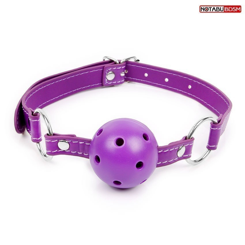 Девайс для провокационных игр на грани - кляп с отверстиями для дыхания в фиолетовом цвете! Яркие впечатления и максимальный комфорт в процессе сессии!