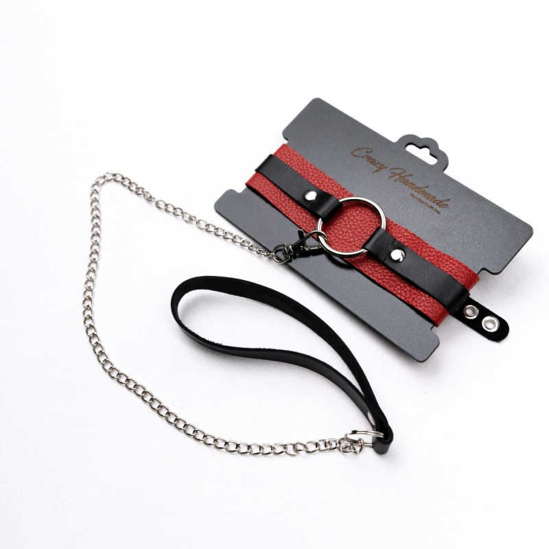 Стильный ошейник из коллекции "Crazy Handmade" с металлическим поводком - отличный БДСМ аксессуар для самой незабываемой сессии!
