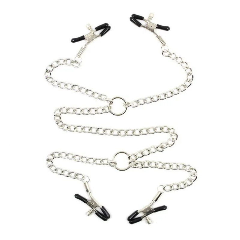 Самый невероятный девайс для мега провокационных ощущений - зажимы на соски и половые губы на толстых металлических цепях! Абсолютно новый спектр захватывающих впечатлений гарантирован!