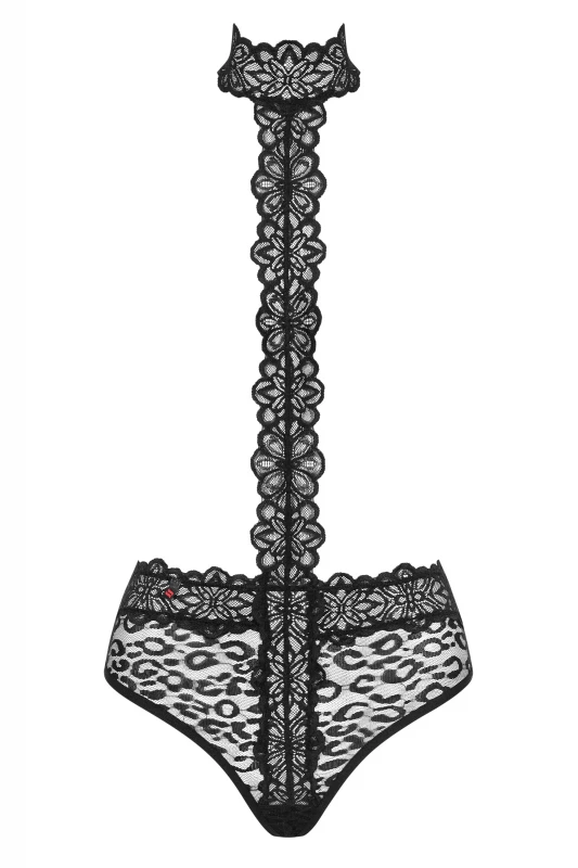 Минималистичное боди из коллекции "Obsessive" - лучший вариант для создания сверх соблазнительного образа! Боди выполнено в виде трусиков-слипов с высокой посадкой и кружевной ленты проходящей по телу... Лента на шее образует чокер и завязывается сзади