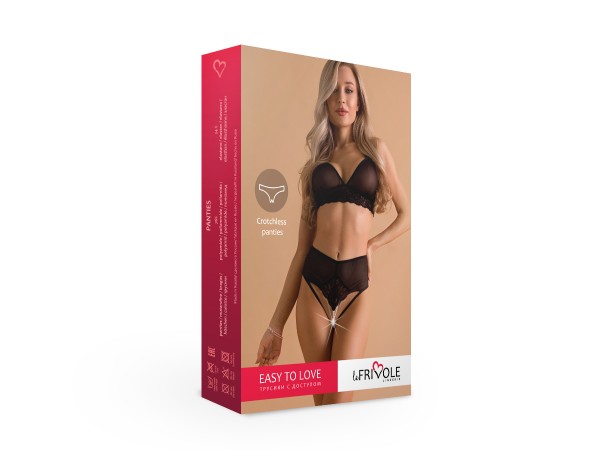 Трусики открытые с жемчужной нитью "Le Frivole" черные, L/XL