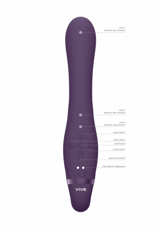 Безремневой страпон с вибрацией "Vive Suki" мега мощный, фиолетовый