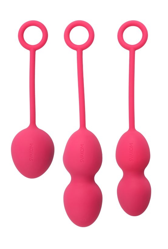 Комментарий: Данные шарики рекомендовали на тренинге, так как в этом наборе их три разных (для прокачки вагинальных мышц нужно периодически менять вес и размер шариков, чтобы не было привыкания), кроме того, со слов тренера, они имеют специальное антибактериальное покрытие, которого хватит надолго. Я не сразу решилась их купить. Приобрела сначала набор другого производителя, ощутимо дешевле и с 4 шариками разного веса, которые вставляются в силиконовую сцепку, но в процессе использования поняла неудобство: если шарики не идеально гладкие, да еще и с рельефом отдельной сцепки, то их невозможно идеально промыть, там могут скапливаться микробы. Еще один недостаток другого набора перед этим оказался в том, что хотя вес был и разный, размер всегда оставался один и тот же - для меня крупноват. Вот так опытным путем я все-таки пришла к покупке именно этого набора Svakom, хотя сначала посчитала, что дороговат. Но аналогов с такими характеристиками за эту цену на данный момент я не нашла.