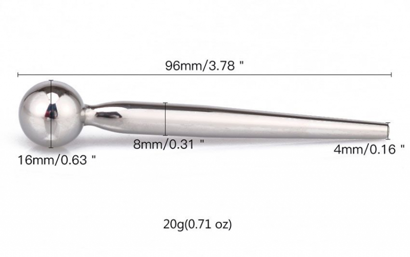 Зонд выполнен из хирургической стали, материала абсолютно гипоаллергенного. Зонд имеет обтекаемую форму, что делает введение более комфортным и безболезненным! В основании металлический объемный шарик, который служит ограничителем